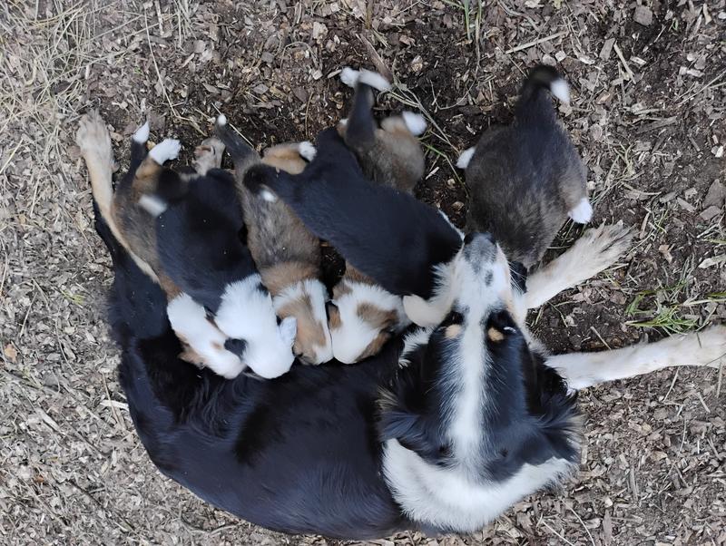 All of our adult English Shepherds have great temperaments and are eager to help out on the farm.