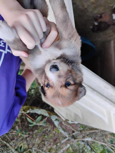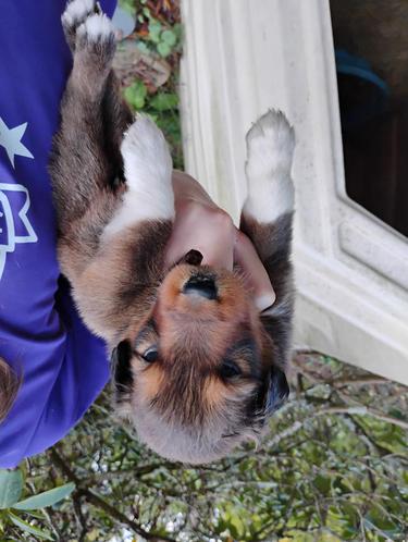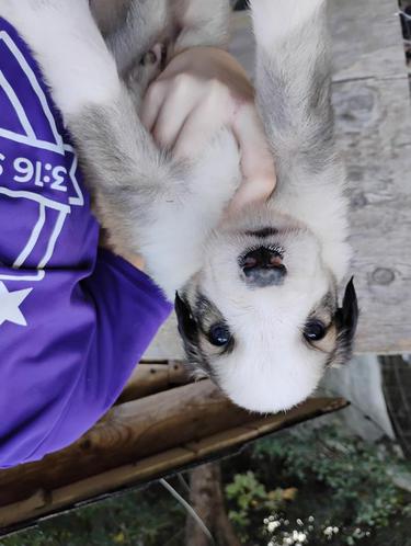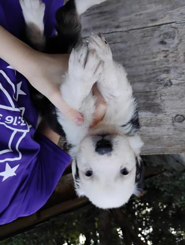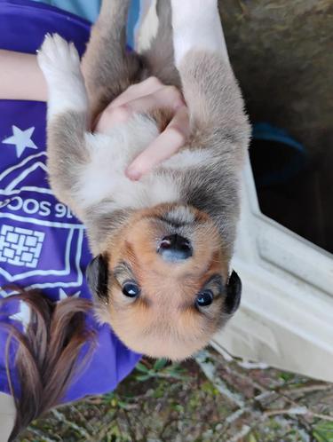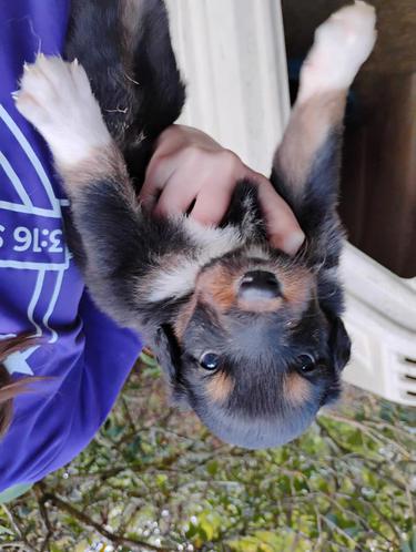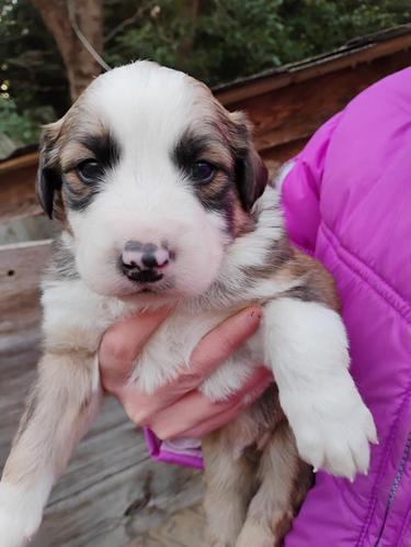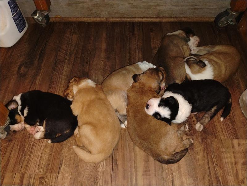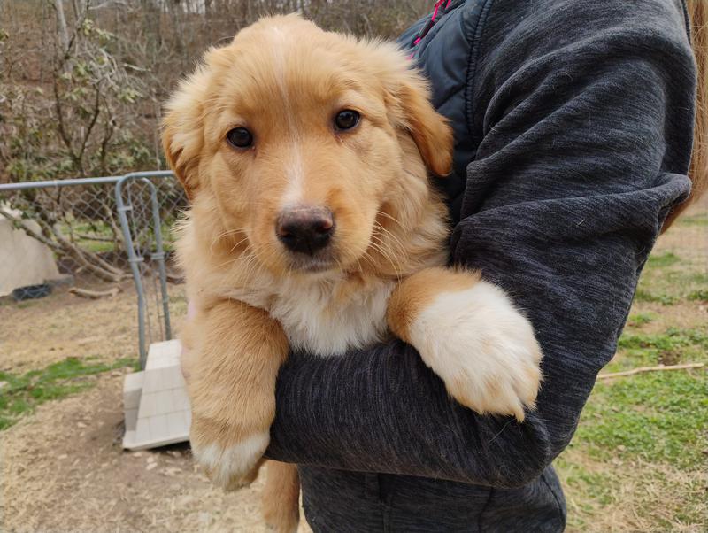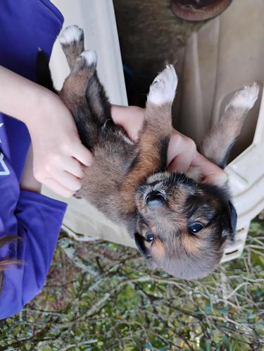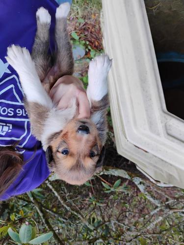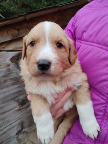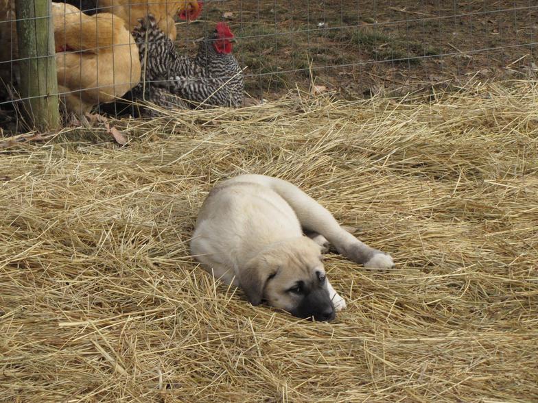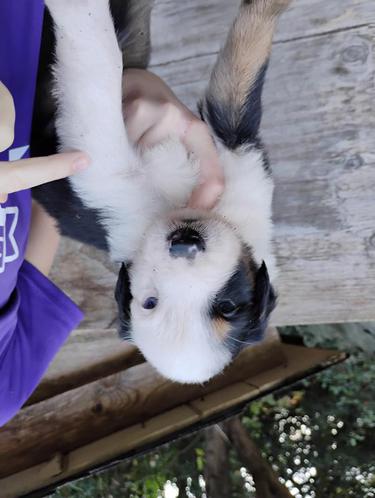All of our pups are exposed to various farm animals and noises. They are handled by children daily, and get lots of love and affection.